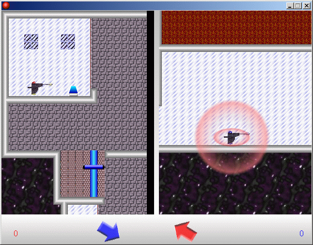 Here is a screenshot for the game I am making for Mayra and Andres.In this update, I have the rift. I also used some special effects (an example shown on Player 2, when he gets the speed power up) to enhance the game. The two numbers represent points. As the game goes on, there will be three different modes to choose from. There will also be powerups, based off the game "Metal Warriors." I personally loved that game when I was younger. It has great multiplayer value, and my brother and I would fight eachother. He usually beat me, but I still had fun off it. However, although this CAN be programmed to play off the keyboard, keyboard input on multiplayer is known for it's problems. Press more than two buttons at a time and the others stop working. This is why the joystick is important. I don't want to spend hours on making this game to have the two people I made it for give up because the game doesn't heed half their commands. It defeats the whole purpose. That is why Mayra / Andres needs the joystick.